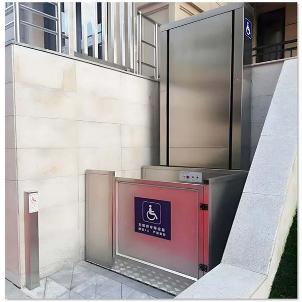Платформа подъемника для инвалидных колясок может безопасно и комфортно поднимать инвалидов, сидящих в инвалидных колясках, или пожилых людей с заболеваниями ног с нижнего этажа на верхний.